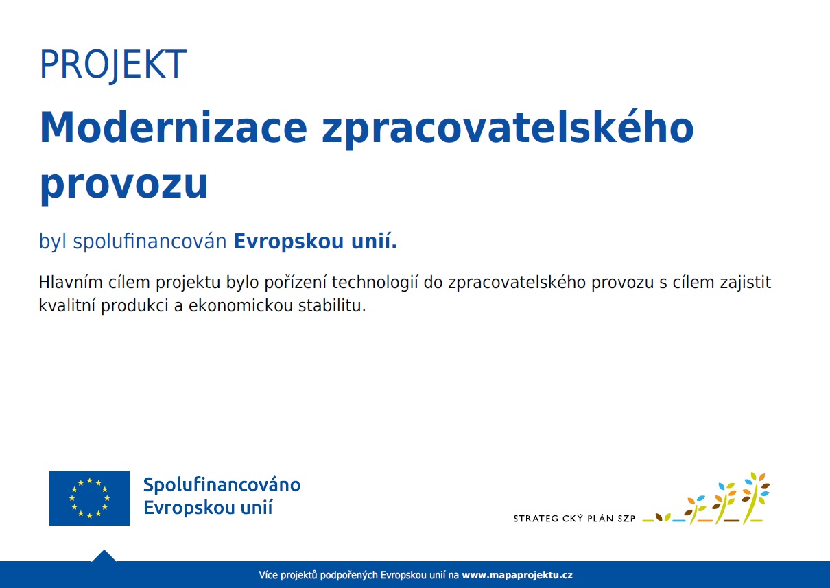 Odběr je možný vždy pouze na základě předchozí objednávky. O konkrétním termínu, místě a čase dodání budete informováni vždy individuálně.
